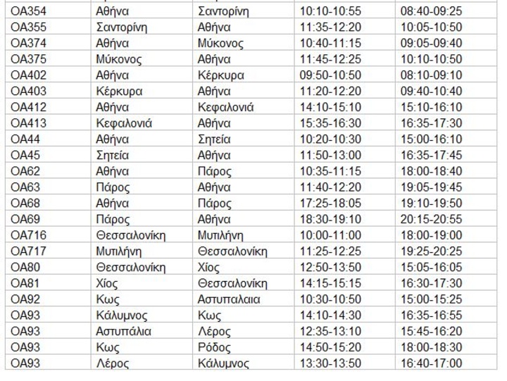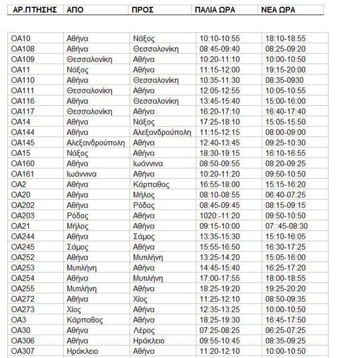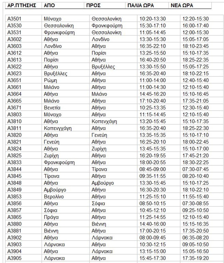 ΤΡΟΠΟΠΟΙΗΣΕΙΣ ΩΡΩΝ ΑΝΑΧΩΡΗΣΗΣ ΠΤΗΣΕΩΝ AEGEAN