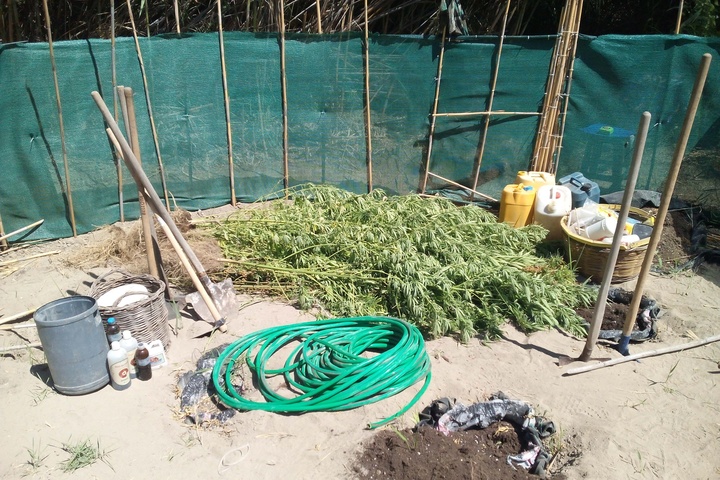 Τα δενδρύλλια κάνναβης εκριζώθηκαν και μαζί με τα υπόλοιπα ανευρεθέντα πειστήρια κατασχέθηκαν.