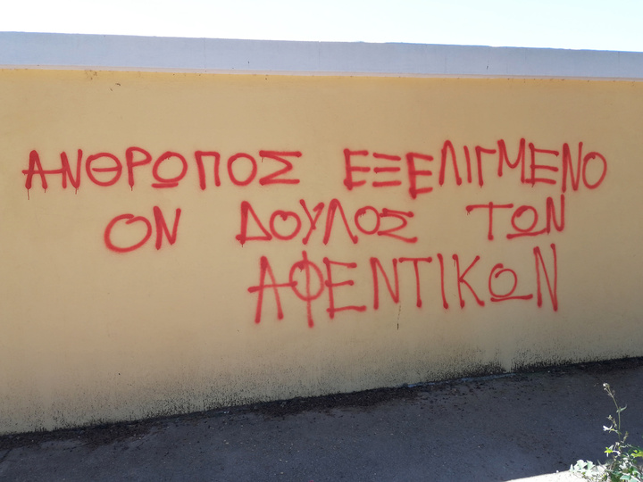 Κάποιοι γράφουν τα συνθήματα, εκτονώνοντας την ανάγκη επικοινωνίας και βεβαίως, ύστερα από μερικές ημέρες, κάποιοι άλλοι τα σβήνουν! Για να επανέλθουν οι ίδιοι ή άλλοι, να γράψουν ξανά νέα συνθήματα και ούτω καθεξής! Δεν είναι βέβαια το μοναδικό σημείο της πόλης, στο οποίο γράφονται συνθήματα, όμως κατά κοινή ομολογία είναι το πιο χαρακτηριστικό και το πιο πολυγραφότατο. Το σίγουρο είναι ότι σε μερικές ημέρες τα συνθήματα θα σβηστούν, αλλά θα εμφανιστούν νέα, όπως ανελλιπώς γίνεται τα τελευταία χρόνια.