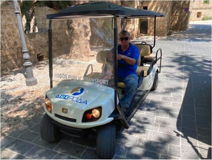 Για τη δρομολόγηση των ηλεκτρικών αυτοκινήτων εντός της Μεσαιωνικής Πόλης συνεργάστηκαν ο πρόεδρος της ΔΕΣ «ΡΟΔΑ» Δημήτρης Τσίκκης και ο αρμόδιος αντιδήμαρχος Στέφανος Δράκος.