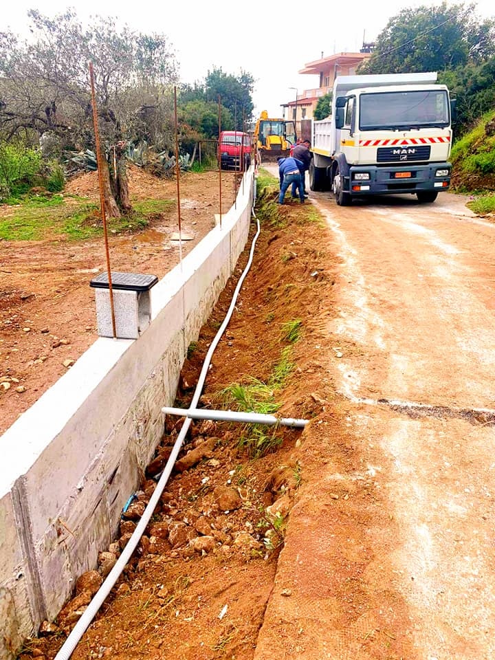 Από την προμήθεια του σκυροδέματος, κατασκευάστηκε τοιχίο αντιστήριξης μήκους 50 περίπου μέτρων τηρώντας τις γεωτεχνικές παραμέτρους. Το τοιχίο αυτό ενώνει τις περιοχές Καμάρι και Αλώνια προστατεύοντας έτσι τον δρόμο που είχε καταστραφεί από τις θεομηνίες του Νοεμβρίου 2019.