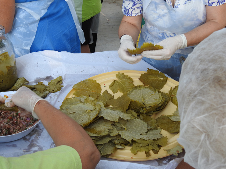 Η χαρά για να μαγειρέψουν για φιλανθρωπικό σκοπό ήταν έκδηλη στα πρόσωπα των γυναικών, οι οποίες τύλιξαν με πολύ μεράκι, χιλιάδες γιαπράκια, για να τα ευχαριστηθούν συνάνθρωποί μας που έχουν ανάγκη.