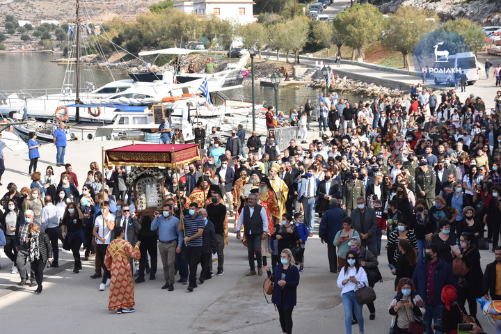 Δεκάδες πιστοί -τηρουμένων των απαραίτητων μέτρων κατά της διασποράς του κορωνοϊού Covid-19- συμμετείχαν στη Θεία Λειτουργία που τελέστηκε στην Ιερά Μονή του Πανορμίτη από τον Μητροπολίτη Σύμης κ. Χρυσόστομο ενώ αμέσως μετά πραγματοποιήθηκε παρουσία τοπικών αρχών του νησιού και η λιτάνευση της θαυματουργής εικόνας.