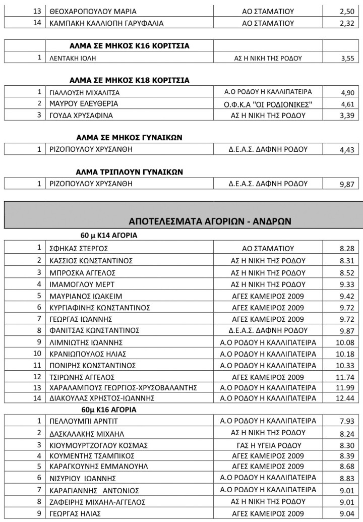 Τα αποτελέσματα της ημερίδας κλειστού στίβου «Χειμώνας 2023»