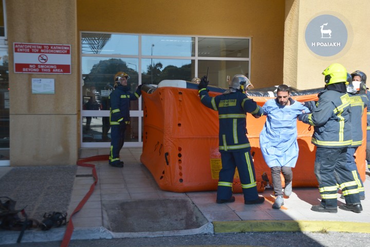 Άσκηση ετοιμότητας πυρόσβεσης και διάσωσης μετά από σεισμό, πραγματοποιήθηκε χθες και μάλιστα με επιτυχία στο νοσοκομείο της Ρόδου.