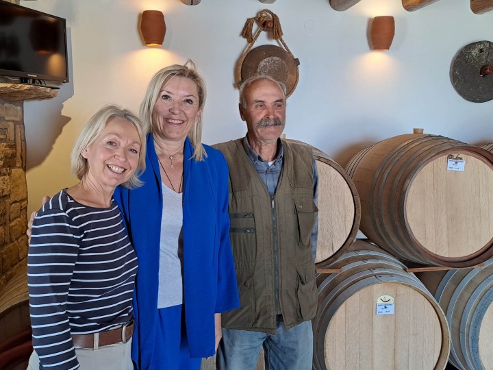 Επίσης, η κα Φτακλάκη επισκέφτηκε και την Οινοποιητική Λειψών "LIPSI Winery", όπου το ζεύγος Μανώλη και Σάλλυ Βαβουλά την ξενάγησαν στους αμπελώνες και στο μοναδικό οινοποιείο.