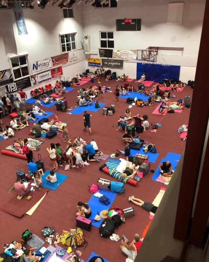 Περίπου 8000 άτομα κυριως ξένοι επισκέπτες φιλοξενήθηκαν χθες το βράδυ και παραμένουν μέχρι και αυτή την ώρα σε σχολεία και κλειστά γήπεδα στην πόλη και σε χωριά της Ρόδου.