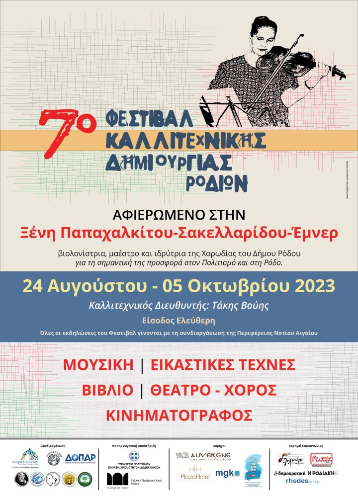 Από τις 24 Αυγούστου έως τις 5 Οκτωβρίου θα πραγματοποιηθεί το 7ο Φεστιβάλ Καλλιτεχνικής δημιουργίας Ροδίων.