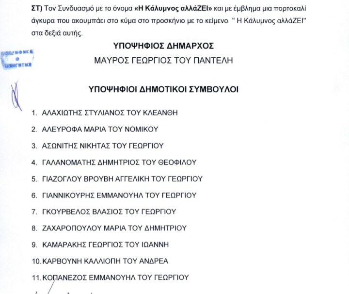 6. “Η Κάλυμνος αλλά ΖΕΙ” με υποψήφιο Δήμαρχο τον Γεώργιο Μαύρο: 49 υποψήφιοι-ιες