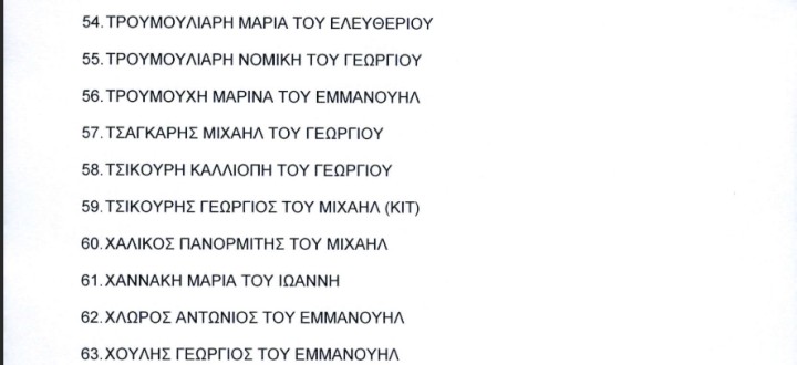 1.“ΚΑΛΥΜΝΟΣ ΕΝΟΤΗΤΑ ΑΝΑΓΕΝΝΗΣΗ” με υποψήφιο Δήμαρχο τον Ιωάννη Μαστροκούκο: 63 υποψήφιοι-ιες