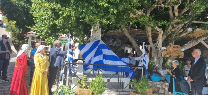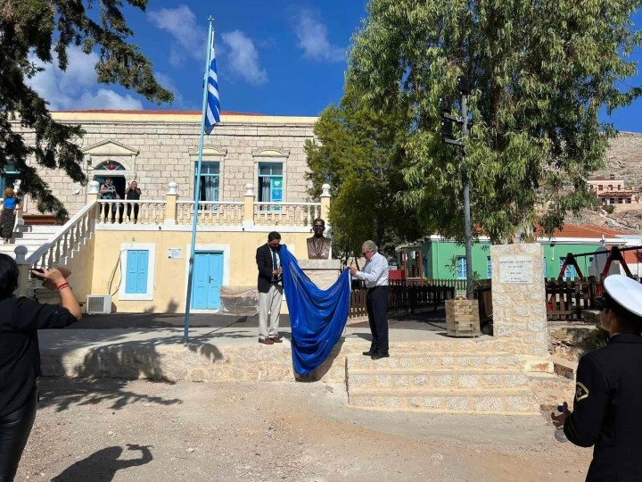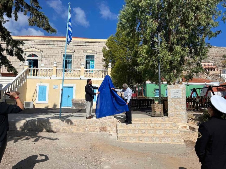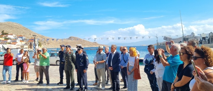Τα αποκαλυπτήρια έκανε ο αντιπρόεδρος του ΙΛΦ κ. Ευάγγελος Ηλιάδης, παρουσία του δημάρχου κ. Ευάγγελου Φραγκάκη, του εκπροσώπου του αστυνομικού διευθυντή Δωδεκανήσου, αντιδημάρχων και μελών του δημοτικού συμβουλίου, των μελών της Ένωσης Αποστράτων Αξιωματικών Ρόδου, των διοικητών του Αστυνομικού Σταθμού του Λιμενικού Σταθμού και του στρατιωτικού φυλακίου Χάλκης, της διευθύντριας του Γυμνασίου Λ.Τ Χάλκης, εκπαιδευτικών, μαθητών και πλήθους κόσμου.