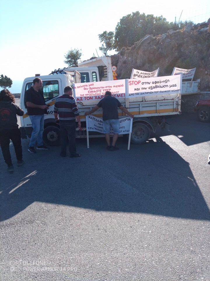 «Πλήθος κόσμου παρευρέθηκε στην περιοχή Στεγνά της κοινότητας Αρχαγγέλου, το οποίο απέτρεψε την εμβαδομέτρηση για να προχωρήσει η κατεδάφιση των ακινήτων.