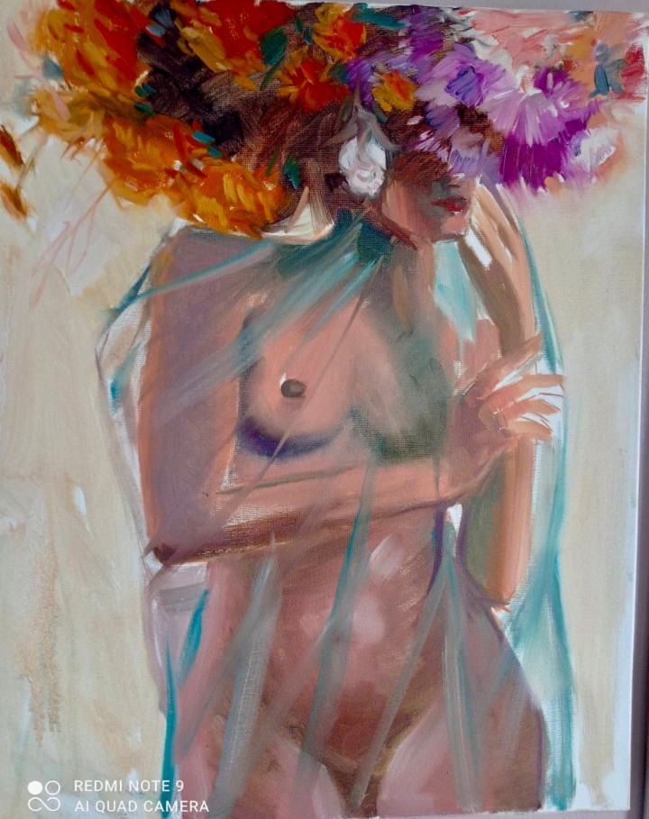 «Ζωγράφιζα από μικρό παιδί, μου λέει, ήταν ανάγκη για εμένα, τρόπος έκφρασης, αλλά και διέξοδος. Όλα μου τα συναισθήματα τα φανέρωνα με τη ζωγραφική. Αργότερα χρησιμοποίησα λάδια και ακρυλικά πάνω σε καμβά».