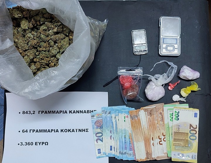 • πέντε αυτοσχέδιες συσκευασίες που περιείχαν 64 γραμμάρια κοκαΐνης