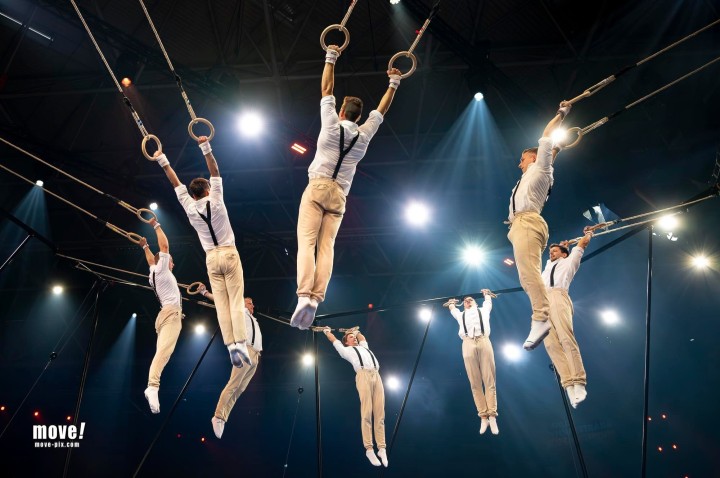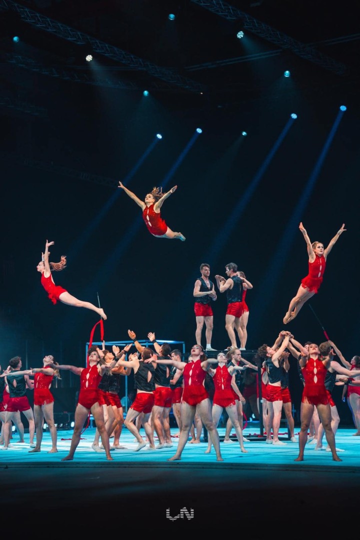 Οι χορογραφίες των ομάδων περιλαμβάνουν ασκήσεις με τραμπολίνο, ακροβατικούς διαδρόμους, αιωρούμενους κρίκους και χορογραφική σύνθεση με έντονη θεατρική διάσταση.