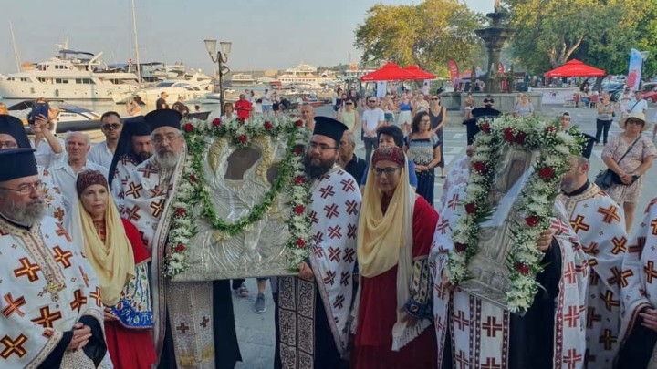 Πλήθος κόσμου από το Σάββατο το απόγευμα προσέρχονται για να προσκυνήσουν τις Άγιες Εικόνες μεταξύ των οποίων προσήλθαν και οι κατοικούντες στη Ρόδο Αστυπαλίτες καθώς και μέλη του Συλλόγου Αστυπαλιτών Ρόδου με επικεφαλής την Αστυπαλίτισσα, συνταξιούχο διδασκάλισσα Μαρία Γεωργιάδου.
