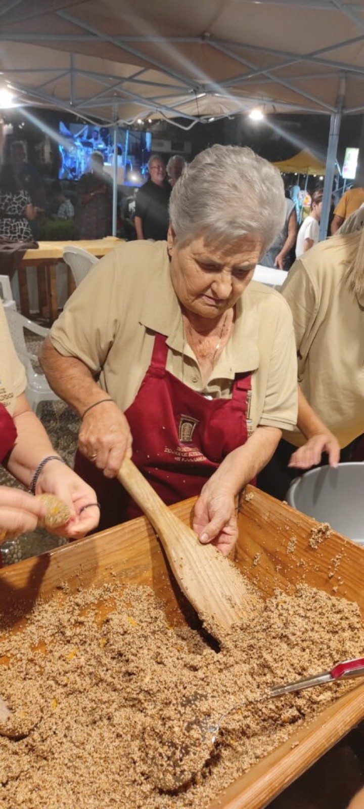 Οι γυναίκες του χωριού, παρουσίασαν στο κοινό τον τρόπο παρασκευής του παραδοσιακού μελεκουνιού, και ακολούθησαν παραδοσιακοί χοροί από τα χορευτικά συγκροτήματα Απολακκιάς, Τερψιχόρη Καλυθιών και του Πολιτιστικού Συλλόγου Γυναικών Κοσκινού. Μάλιστα, παρασκευάστηκαν και προσφέρθηκαν στους παρευρισκόμενους 5 χιλιάδες τεμάχια μελεκουνιού, για την παρασκευή των οποίων χρησιμοποιήθηκαν 25 κιλά σησάμι και 25 κιλά Ροδίτικο μέλι σε 5 μεγάλες σκάφες. Η βραδιά έκλεισε με χορούς από τοπικό συγκρότημα.
