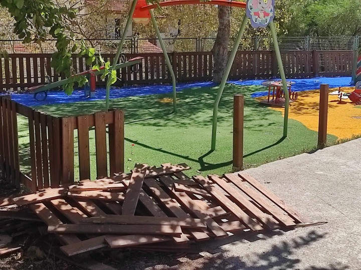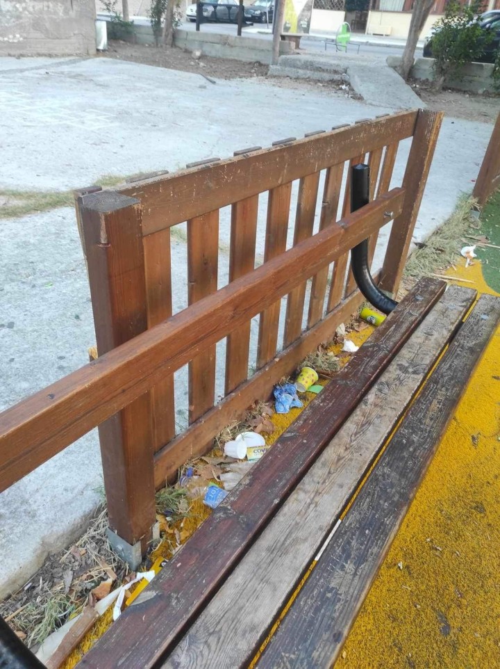 Παρά τις προφορικές συστάσεις μας προς τους εφήβους, όχι μόνο δεν βρήκαμε ανταπόκριση, αλλά καθημερινά, η κατάσταση χειροτερεύει. Αυτή η παιδική χαρά, πλέον, όχι μόνο δεν είναι λειτουργική, αλλά είναι εντελώς κατεστραμμένη και η χρήση της αποτελεί κίνδυνο για μικρά παιδιά.