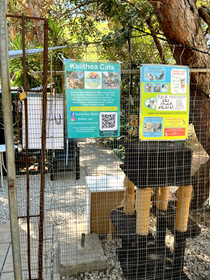 Το «γατόσπιτο» δημιουργήθηκε μέσα στο δάσος πριν την είσοδο στις Πηγές Καλλιθέας, και όπως αναφέρουν στη «Ροδιακή» οι εθελόντριες, το σημείο εκείνο παραχωρήθηκε από τον τότε δήμαρχο Καλλιθέας, Γιάννη Ιατρίδη, και λειτουργεί πάνω από 10 χρόνια.