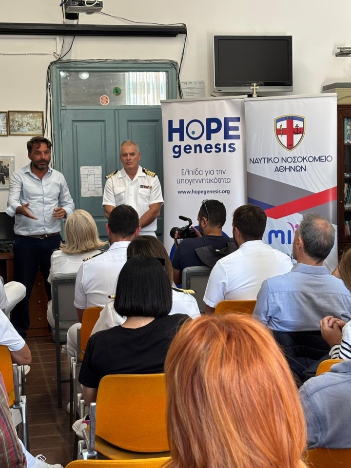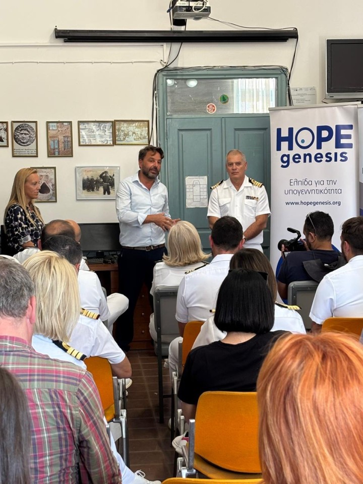 Στην αίθουσα του Σχολικού Συγκροτήματος της Χάλκης, τα στελέχη του Πολεμικού Ναυτικού και οι υπεύθυνοι του Προγράμματος με επικεφαλής της Μονάδας Ιατρικώς Υποβοηθούμενης Αναπαραγωγής του Ναυτικού Νοσοκομείου Αθηνών Πλοίαρχο κ. Νίκο Πετρογιαννη σε συνεργασία με τα μέλη της HOPEgenesis με παρόντα τον Πρόεδρο κ. Στεφανο Χανδακα και την project manager κα. Ευα Παπαδάκη παρουσίασαν τις λεπτομέρειες της πρωτοβουλίας σε κατοίκους του νησιού.