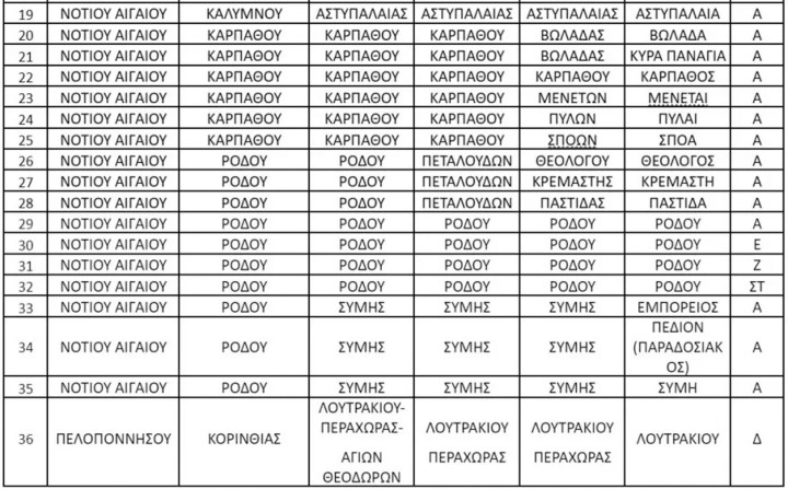 Πρόκειται για συγκεκριμένες περιοχές στους δήμους Αγ. Αναργύρων – Καματερού, Βριλησσίων, Χαλανδρίου, Γλυφάδας, Πειραιά, Ιθάκης, Καρπάθου, Λουτρακίου, Σύμης, Πύργου, Ρόδου και Λέρου.