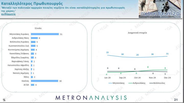 Μικρές απώλειες για το ΠΑΣΟΚ, δημοφιλέστερος πολιτικός αρχηγός ο Ανδρουλάκης, αλλά 23 μονάδες πίσω από τον Μητσοτάκη για την πρωθυπουργία - Μειώνεται η απαισιοδοξία των Ελλήνων, ανακάμπτει η κυβερνητική εικόνα