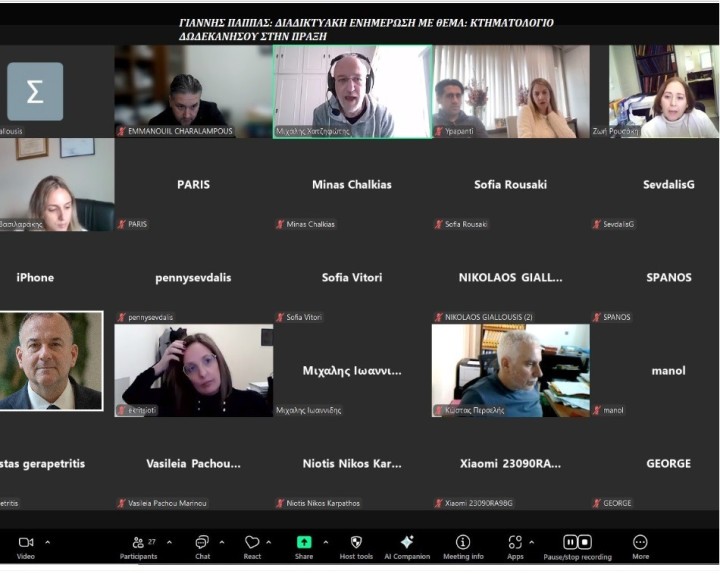 Με ιδιαίτερη επιτυχία ολοκληρώθηκε η πρώτη ενημερωτική τηλεδιάσκεψη που διοργάνωσε ο Βουλευτής Δωδεκανήσου και πρώην Υφυπουργός Ναυτιλίας Νησιώτικης Πολιτικής Γιάννης Παππάς, με θέμα «Το Κτηματολόγιο Δωδεκανήσου στην πράξη».