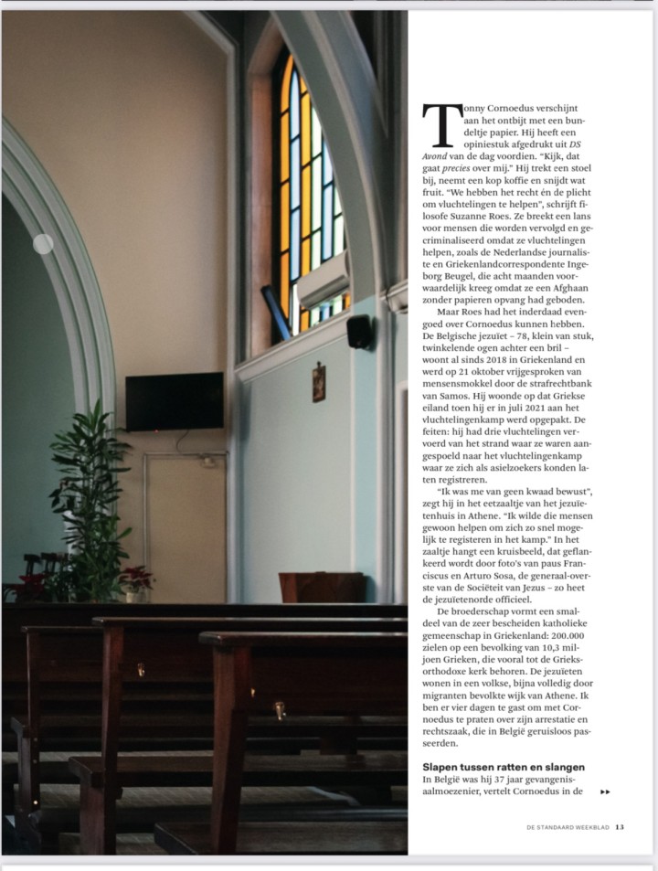 Συγκεκριμένα, η ιστορική εφημερίδα “De Standaard”, δημοσίευσε στις 18 Ιανουαρίου άρθρο, με αφορμή την αθώωση του Βέλγου Ιησουίτη ιεραπόστολου στο οποίο σκιαγραφεί το βιογραφικό του, το ποιμαντικό του έργο στην Ελλάδα, παρέχοντας στήριξη σε ηλικιωμένους Έλληνες στην Αθήνα και στους πρόσφυγες του « Κ.Υ.Τ.» Σάμου, καθώς και τις ιδέες του για το ευαίσθητο θέμα του μεταναστευτικού.