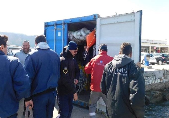 Εν συνεχεία τα πλωτά φράγματα ρυμουλκήθηκαν με τη βοήθεια της μίας(1) εκ των δύο (2) λέμβων και αφού ξεπλύθηκαν με γλυκό νερό, επανατοποθετήθηκαν στην τροχήλατη μπαγκαζιέρα της Μαρίνας «EVROS SA».
