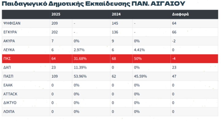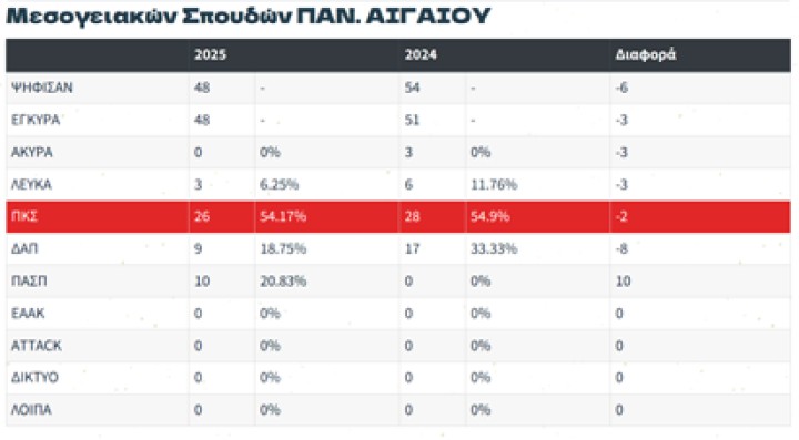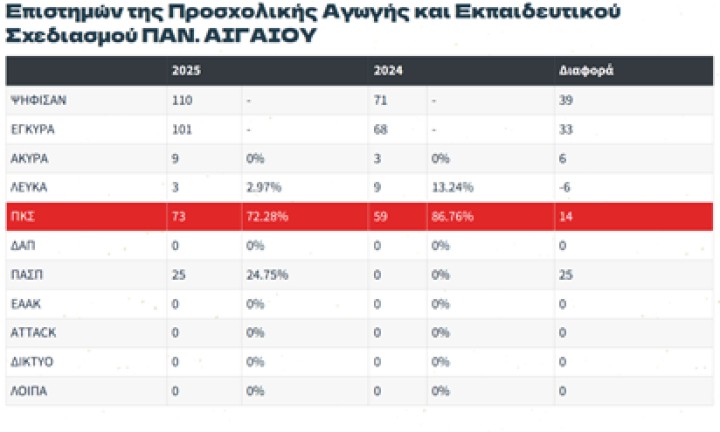 Με ξεκάθαρη ενίσχυση της επιρροής της, η Πανσπουδαστική Κίνηση Συνεργασίας αναδείχθηκε για τέταρτη συνεχόμενη χρονιά πρώτη δύναμη στις φοιτητικές εκλογές, τόσο πανελλαδικά όσο και στα τμήματα του Πανεπιστημίου Αιγαίου στη Ρόδο. Ειδικά στο νησί, η φοιτητική παράταξη κατέκτησε την αυτοδυναμία σε δύο από τα τρία τμήματα, επιβεβαιώνοντας τη σταθερή δυναμική της.