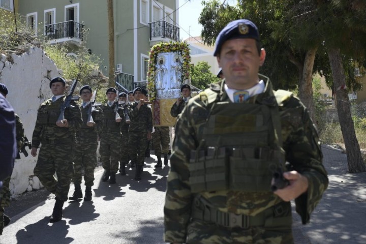 Ο Υπουργός Εθνικής Άμυνας παρακολούθησε την Πανηγυρική Θεία Λειτουργία στον Ιερό Μητροπολιτικό Ναό Αγίων Κωνσταντίνου και Ελένης Καστελλορίζου, στην οποία χοροστάτησε ο Σεβασμιώτατος Μητροπολίτης Σύμης, Τήλου, Χάλκης και Καστελλορίζου κ.κ. Χρυσόστομος. Αμέσως μετά συμμετείχε στη λιτάνευση της ιερής εικόνας.