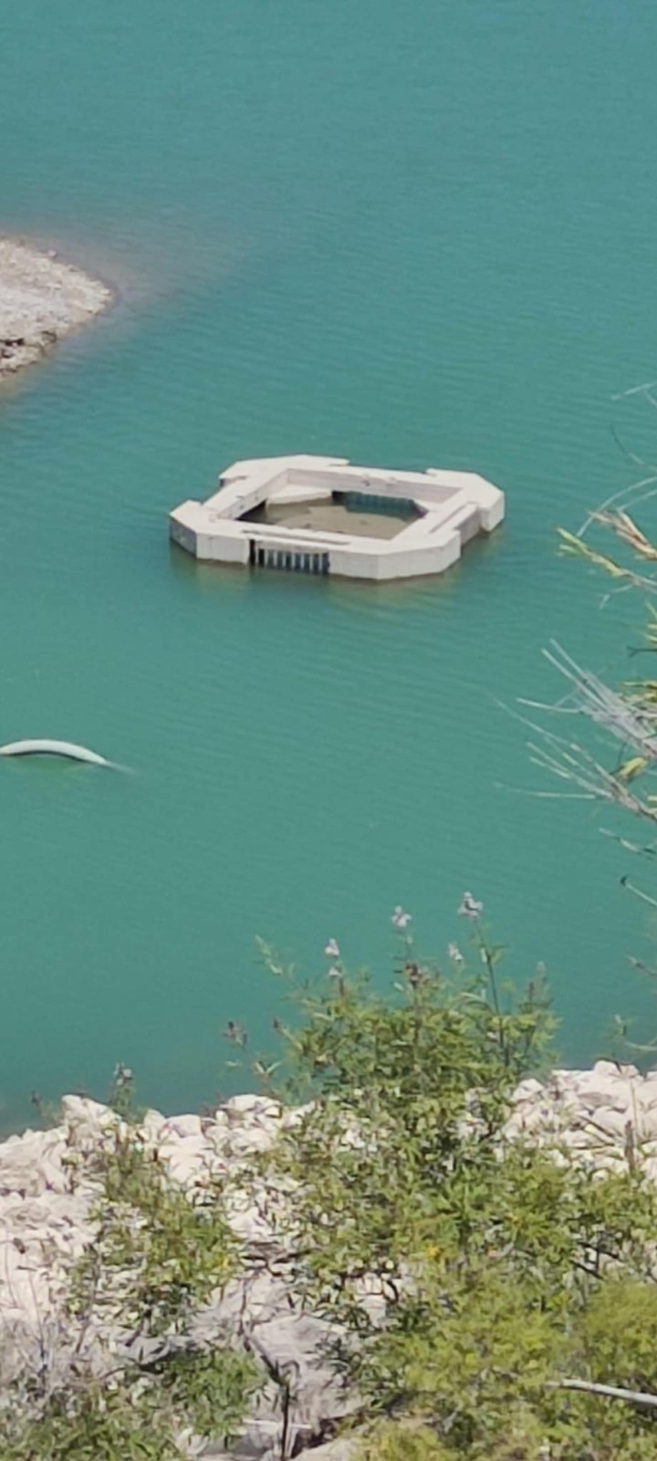 Οι φωτογραφίες-ντοκουμέντο δείχνουν εμφανή τα φρεάτια υδροληψίας, γεγονός που αποδεικνύει την έλλειψη νερού και παραπέμπει σύντομα σε διακοπή υδροδότησης για τις αρδευτικές εκτάσεις της περιοχής.