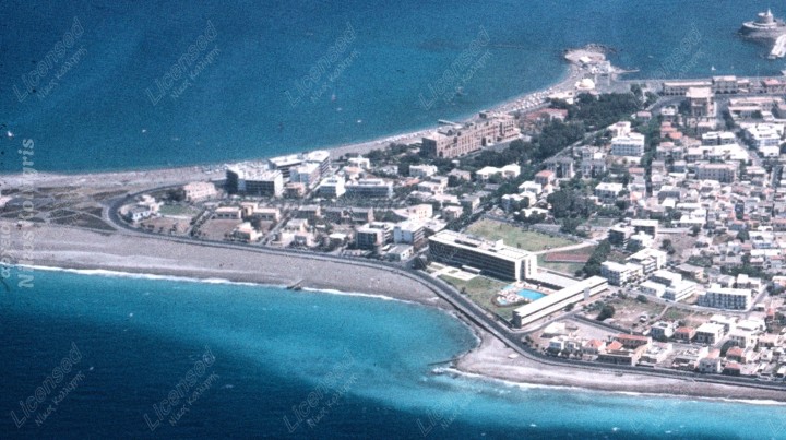 Η συγκεκριμένη φωτογραφία δεν είναι απλώς μια αεροφωτογραφία. Είναι ένα παράθυρο στη μνήμη της πόλης, μια πολύτιμη μαρτυρία για την αρχιτεκτονική, την τουριστική ανάπτυξη και τον αστικό ιστό της Ρόδου όπως αυτός διαμορφωνόταν στα μέσα του 20ού αιώνα.