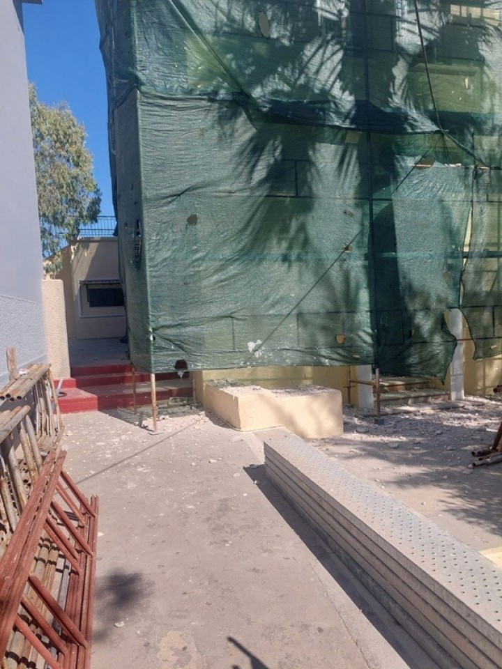 - Επισκευή της πρόσοψης και της πίσω πλευράς του κτηρίου