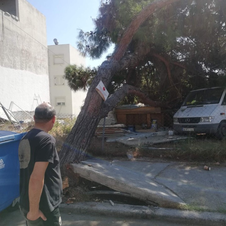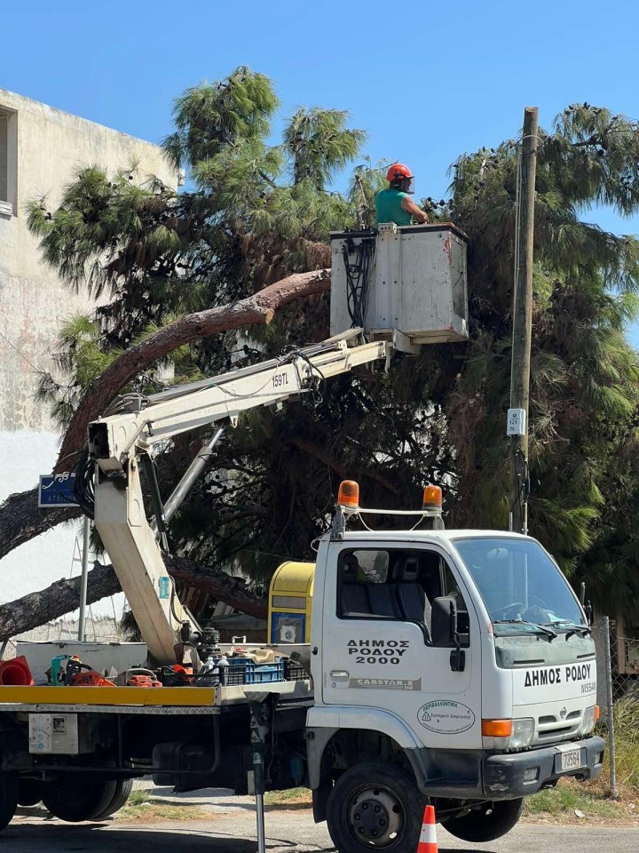 Επικίνδυνη κλίση, πήρε ολόκληρο δέντρο στην περιοχή της οδού Αθηνών στην Ανάληψη, το πρωί του Σαββάτου, γεγονός που ανησύχησε τους κατοίκους της ευρύτερης περιοχής και κινητοποίησε άμεσα τις αρμόδιες υπηρεσίες του δήμου της Ρόδου.