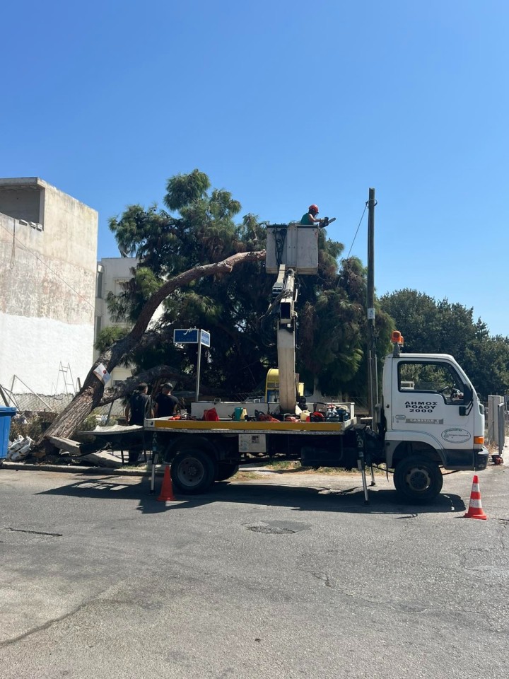 Μιλώντας στη "Ρ" ο αντιδήμαρχος "Περιβάλλοντος και Πρασίνου" κος Γιάννης Μητσού, σημείωσε ότι αμέσως μόλις το γεγονός έγινε γνωστό, κινητοποιήθηκε αμέσως η υπηρεσία στέλνοντας στο σημείο γερανοφόρο όχημα με εξειδικευμένους εργάτες για τον τεμαχισμό και την απομάκρυνση του κορμού και των κλαδιών.