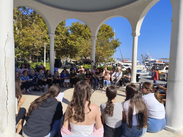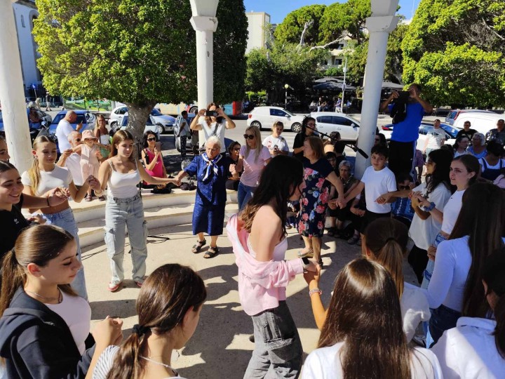 Μαθητές του 6ου Γυμνασίου Ρόδου με τη συνοδεία των εκπαιδευτικών Φυσικής Αγωγής του σχολείου έδωσαν τον ρυθμό με χορούς και τραγούδησαν μαζί με τις γιαγιάδες και τους παππούδες.