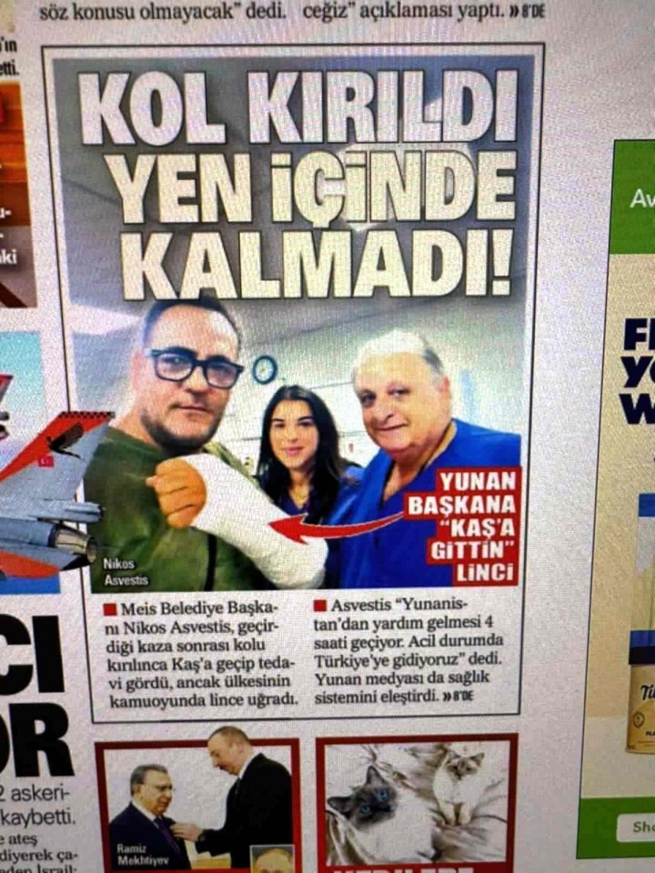 Ψευδές και ανυπόστατο χαρακτηρίζει δημοσίευμα του τουρκικού Τύπου ο δήμαρχος Μεγίστης Νίκος Ασβέστης, καθώς τον παρουσιάζει να έχει μεταβεί στην Τουρκία και να έχει μεταφερθεί σε νοσοκομείο της χώρας, προκειμένου να του παρασχεθούν ιατρικές υπηρεσίες στο χέρι του, επειδή είναι πιο κοντά από την ελληνική επικράτεια.
