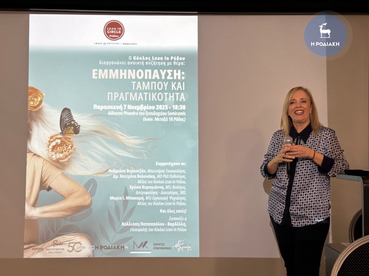 Με εξαιρετική επιτυχία και εντυπωσιακή συμμετοχή πραγματοποιήθηκε προχθές - Παρασκευή 7 Νοεμβρίου, στο ξενοδοχείο Semiramis στη Ρόδο, η εκδήλωση του Κύκλου Lean In Ρόδου, μέλους του Lean In Network Greece, με τίτλο «Εμμηνόπαυση: Ταμπού και Πραγματικότητα».