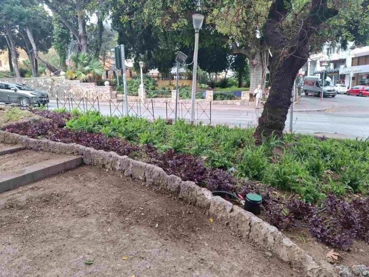 Διαμορφώθηκαν νέα παρτέρια και φυτεύτηκαν χαμηλά καλλωπιστικά φυτά, ανοίγοντας οπτικά τον χώρο και αναδεικνύοντας την είσοδο του πάρκου.