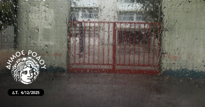 Με απόφαση του δημάρχου Ρόδου, Αλέξανδρου Κολιάδη, αναστέλλεται αύριο, Παρασκευή 5 Δεκεμβρίου 2025, η λειτουργία όλων των σχολικών μονάδων, όλων των εκπαιδευτικών βαθμίδων, καθώς και των αθλητικών εγκαταστάσεων, σε όλες τις Δημοτικές Ενότητες, λόγω των έντονων καιρικών φαινομένων που αναμένονται στην περιοχή, σύμφωνα με το Έκτακτο Δελτίο Επικίνδυνων Καιρικών Φαινομένων της Εθνικής Μετεωρολογικής Υπηρεσίας.
