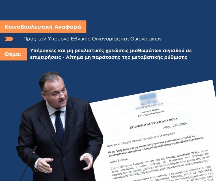 Ο κ. Παππάς ζητά άμεση επανεξέταση και τροποποίηση του τρόπου υπολογισμού των μισθωμάτων, επισημαίνοντας την ανάγκη για δίκαιους και εφαρμόσιμους κανόνες που θα ενισχύσουν τον τουρισμό και την οικονομία της Ρόδου και της Δωδεκανήσου.