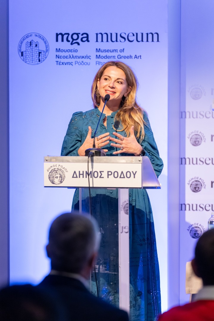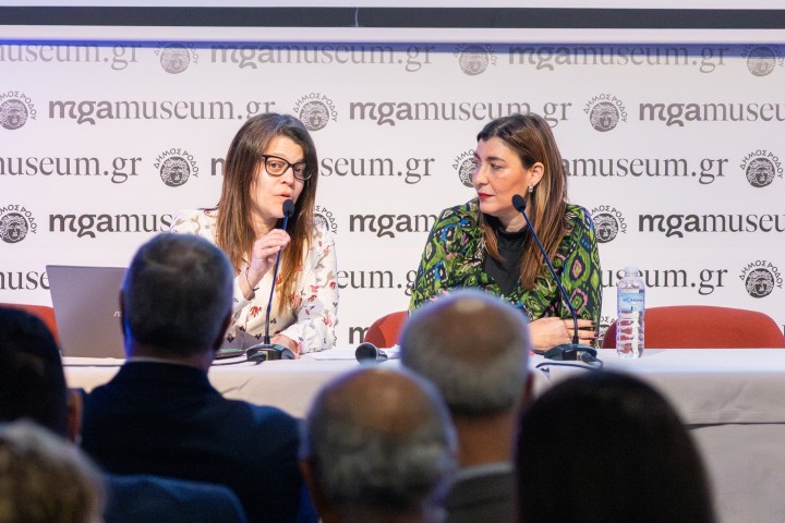 Ακολούθησε η ομιλία της ιδρύτριας της ΑΜΚΕ «ΝΗΣΟΣ ΚΙΝΕΩ» κας Ήρας Ψαρού, με τίτλο «Πώς ξεκινήσαμε». Στην τοποθέτησή της αναφέρθηκε στους λόγους που οδήγησαν στην ίδρυση της ΑΜΚΕ, στην έμπνευση πίσω από την ονομασία της ΑΜΚΕ, καθώς και στα προσωπικά της βιώματα από την παιδική της ηλικία και τη σύνδεσή της με το Παράρτημα Προστασίας του Παιδιού Δωδεκανήσου, που αποτέλεσαν την αφετηρία για τη δράση και την προσφορά προς τα φιλοξενούμενα κορίτσια.