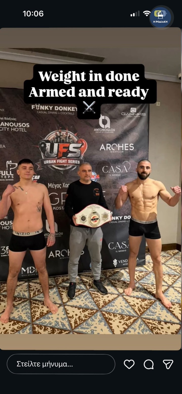 Η Ρόδος ετοιμάζεται να φιλοξενήσει μία από τις πιο δυνατές αναμετρήσεις της χρονιάς στα μαχητικά αθλήματα. Σήμερα, στο Rhodes Palace, τα φώτα θα πέσουν πάνω σε μια μάχη που συγκεντρώνει ήδη έντονο ενδιαφέρον από φίλους του αθλήματος σε όλη τη χώρα.