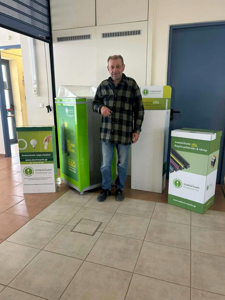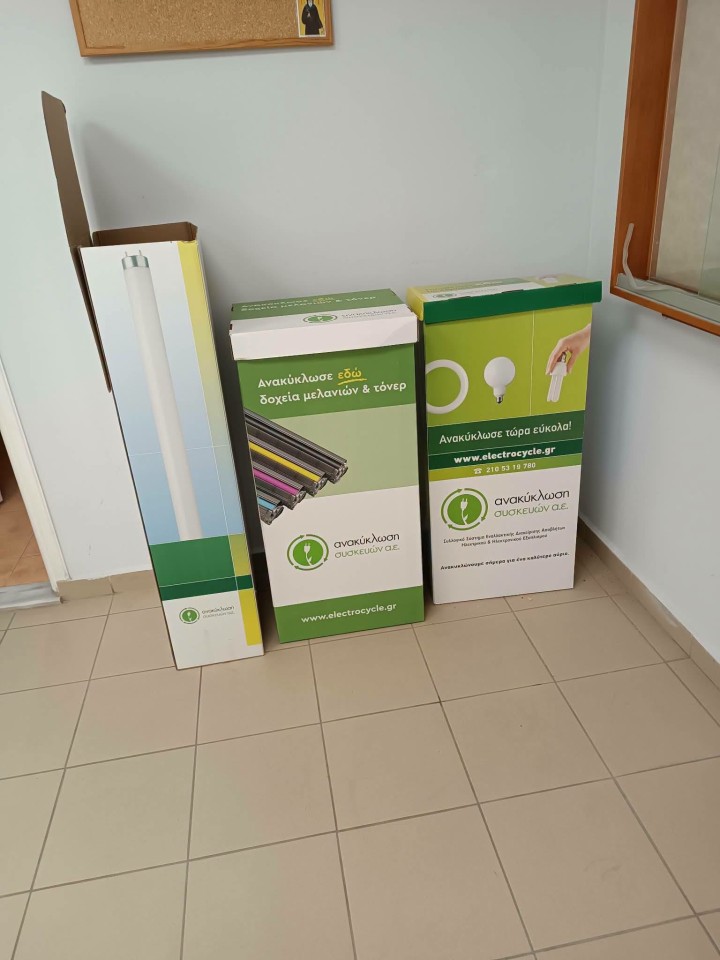 Συγκεκριμένα, ολοκληρώθηκε η παράδοση και τοποθέτηση ειδικών κάδων ανακύκλωσης για: μικρές οικιακές ηλεκτρικές και ηλεκτρονικές συσκευές,τόνερ και μελάνια εκτυπωτών καθώς και λαμπτήρες κάθε είδους.Τις επόμενες μέρες θα προγραμματιστεί σε συνεννόηση με τους διευθυντές και η τοποθέτηση στις σχολικές μονάδες, όπου θα πραγματοποιηθούν και εκπαιδευτικές παρουσιάσεις προς τους μαθητές.