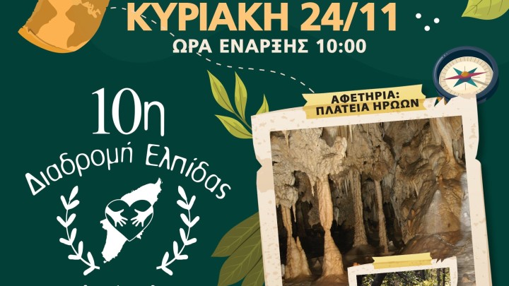 Αθλητικά 13.11.2024 13:15 Στις 24 Νοεμβρίου η "10η Διαδρομή Ελπίδας" από τον Αρχάγγελο στο σπήλαιο του Κούμελου