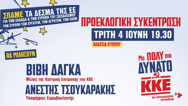 Επικαιρότητα 24.05.2024 13:15 Ανακοίνωση του ΚΚΕ για τον βανδαλισμό του εκλογικού περιπτέρου του κόμματος στην πλατεία Κύπρου