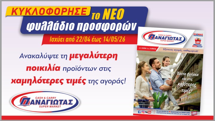 Market 24.04.2026 14:30 Super Market ΠΑΝΑΓΙΩΤΑΣ: Υποδεχόμαστε τον Μάιο με Φρεσκάδα και Απίθανες Προσφορές!