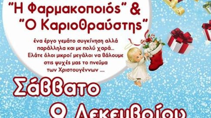 Πολιτισμός - Εκδηλώσεις 01.12.2017 18:30 Η Φαρμακοποιός και ο Καριοθραύστης απο τη θεατρική ομάδα Φανών