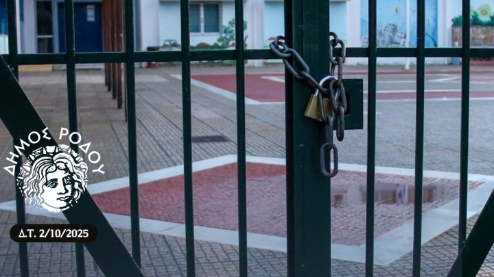 Επικαιρότητα 02.10.2025 15:25 Ρόδος: Κλειστά τα σχολεία όλων των βαθμίδων την Παρασκευή 3 Οκτωβρίου με απόφαση του Δημάρχου Ρόδου Αλέξανδρου Κολιάδη